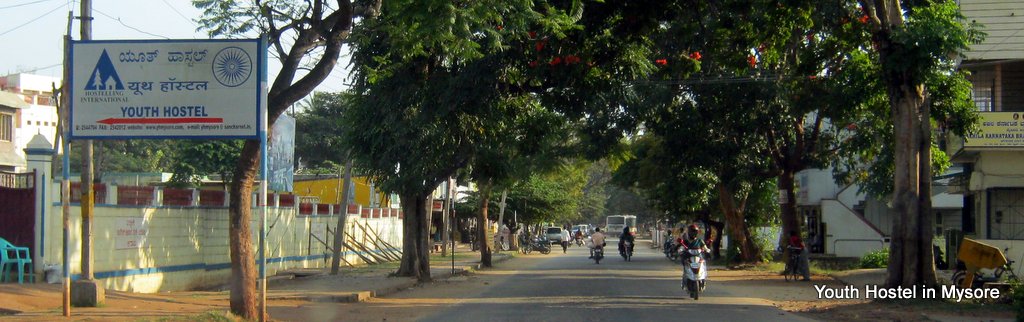 From Railway station get to the MUDA circle on the JLB road. Turn right into Ramavilasa Road. Head straight and cross the railway crossing. Ask for direction to Maruthi Temple of Saraswathipuram. The hostel is at short walk from the temple. See www.yhmysore.com for more details.